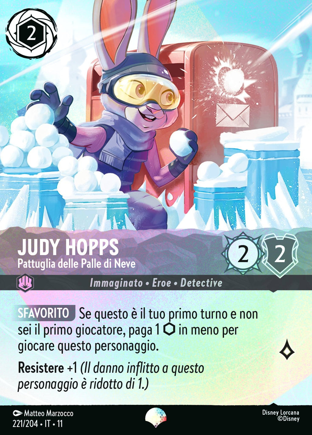 Judy Hopps - Pattuglia delle Palle di Neve WSP 221/204 Epica Holo - ITA - Near Mint - Incanto d'Inverno - Carta Lorcana