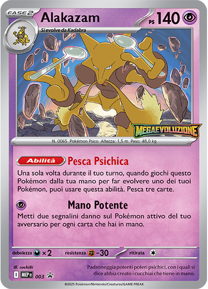 Ciascun kit Sfida Strategica contiene quattro buste dell’espansione Megaevoluzione e un mazzo da 40 carte pronto per giocare con carte di questa espansione e di quelle precedenti, tra cui un’esclusiva carta promozionale olografica a caso su quattro. A seconda della carta promozionale che ottieni, potresti giocare con il fantastico Meganium, il preciso Inteleon, l’astuto Alakazam e il fluttuante Lunatone.