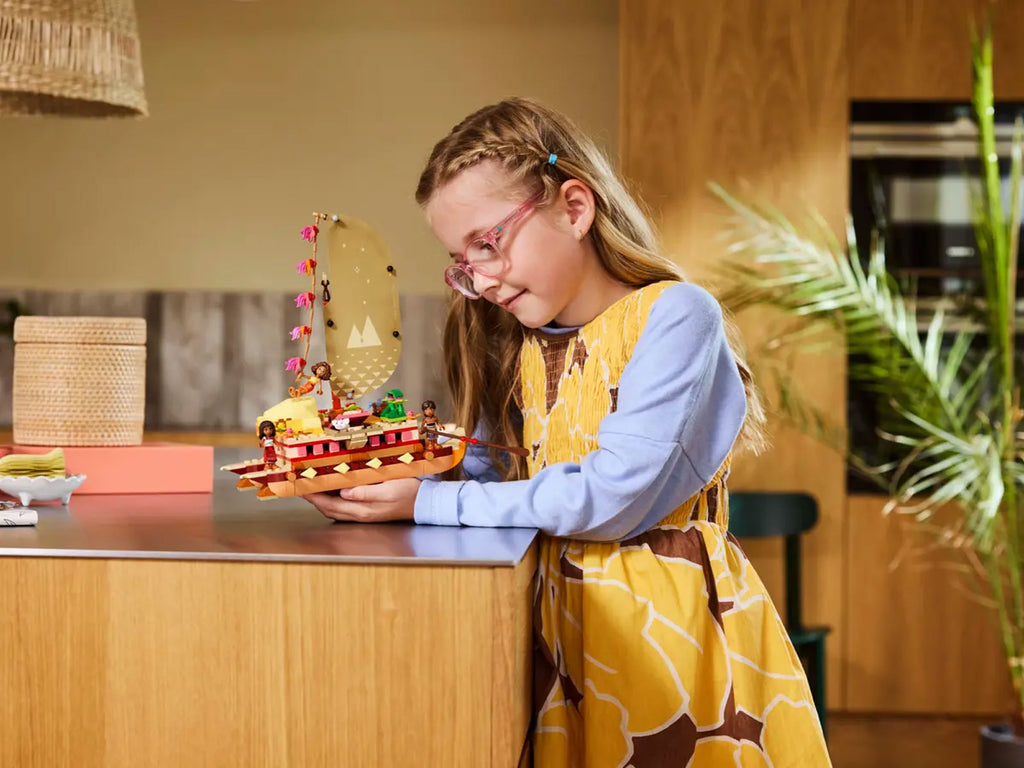 - Kit modello: include una canoa a doppio scafo costruibile con vela in tessuto, ponte rimovibile e zona giorno sottocoperta, più 4 personaggi del film LEGO®¦ Disney e tanti dettagli