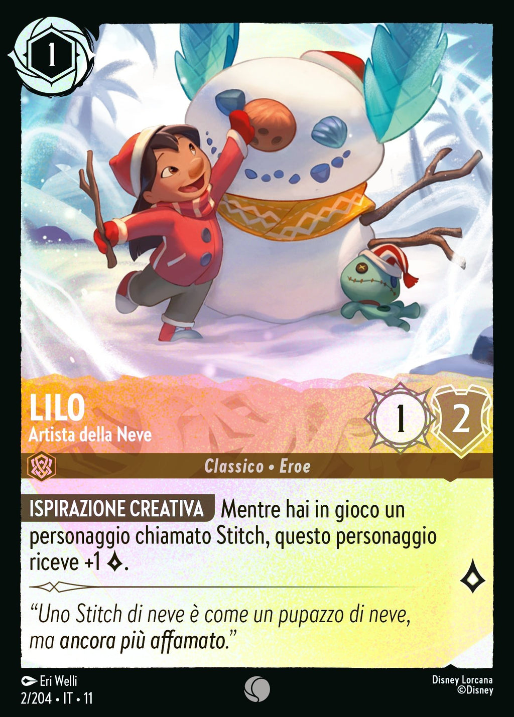 004Lilo - Artista della Neve WSP 002/204 Comune Holo - ITA - Near Mint - Incanto d'Inverno - Carta Lorcana